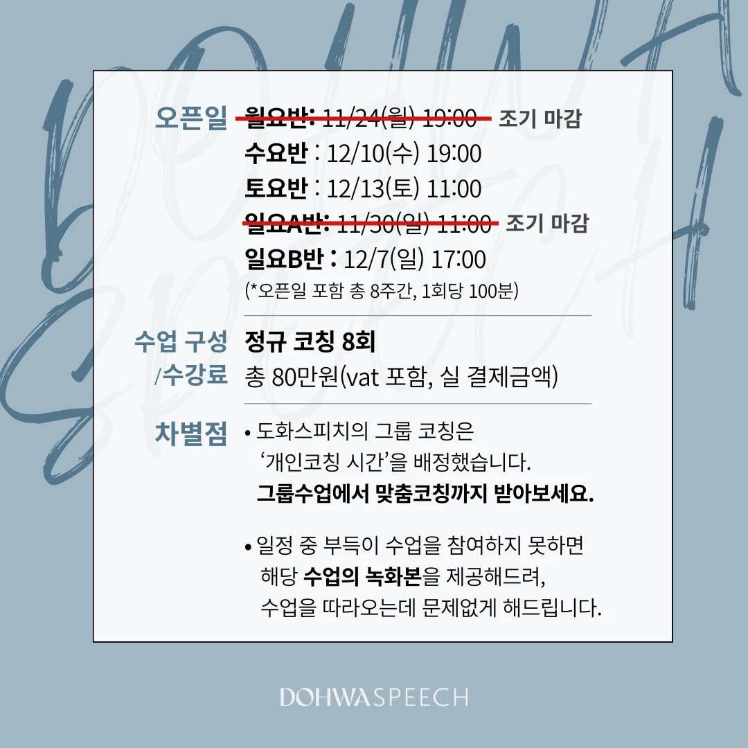 11월 그룹코칭은 조기마감되었습니다.